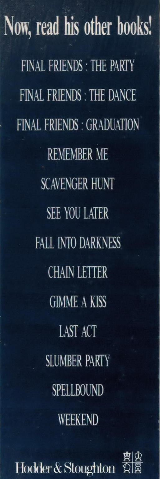 After FF [Final Friends] I sat down and wrote Remember Me, and I recall something that stunned me shortly after it came out. I used to go for runs with an old friend of mine from high school, David, and afterwards we’d go to a mall near Knotts Berry Farm to eat. It was one of those huge malls with a massive food court where you could find practically anything you were hungry for. Anyway, David and I were sitting and eating at the mall when I noticed a bunch of teenage girl sitting around our table, reading. Actually, they were mostly reading Remember Me, although a few had Weekend or Chain Letter with them. It was the first time I’d ever seen someone reading one of my books and it was an interesting experience. David went to tell the girls that I was Christopher Pike but I stopped him. I doubted they would believe him. At the same time I thought it would be more fun to tell them that I knew him, which is what I did. Of course, most of the girls thought I was just some annoying pervert. However, a few seemed to believe me, particularly when they quizzed me about the book, details about the story. Naturally, I was able to answer all their questions in exquisite detail. (Source)